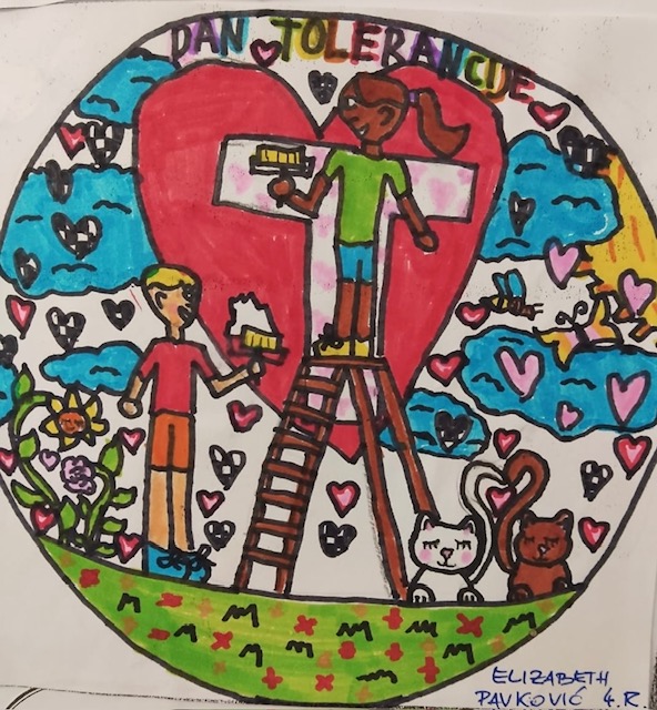 Povodom obilježavanja Međunarodnog dana tolerancije, u našoj školi proveden je likovni natječaj na temu „Moj simbol tolerancije“. Učenici su kroz svoje crteže izražavali što za njih znači prihvaćanje, poštovanje i razumijevanje među ljudima. Zbog velikog broja iznimno kvalitetnih radova izbor nije bio nimalo lak. Ipak, stručno povjerenstvo izdvojilo je četiri rada koja su se posebno istaknula.